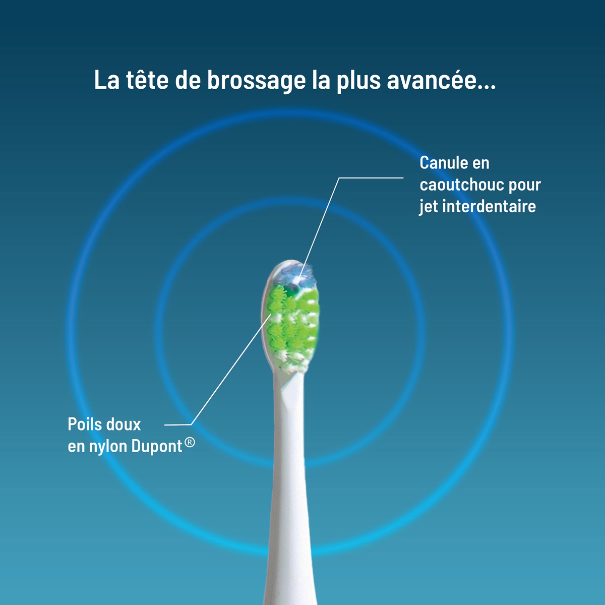 - Fréquence de brossage : 42 000 à 47 000 mouvements/minute