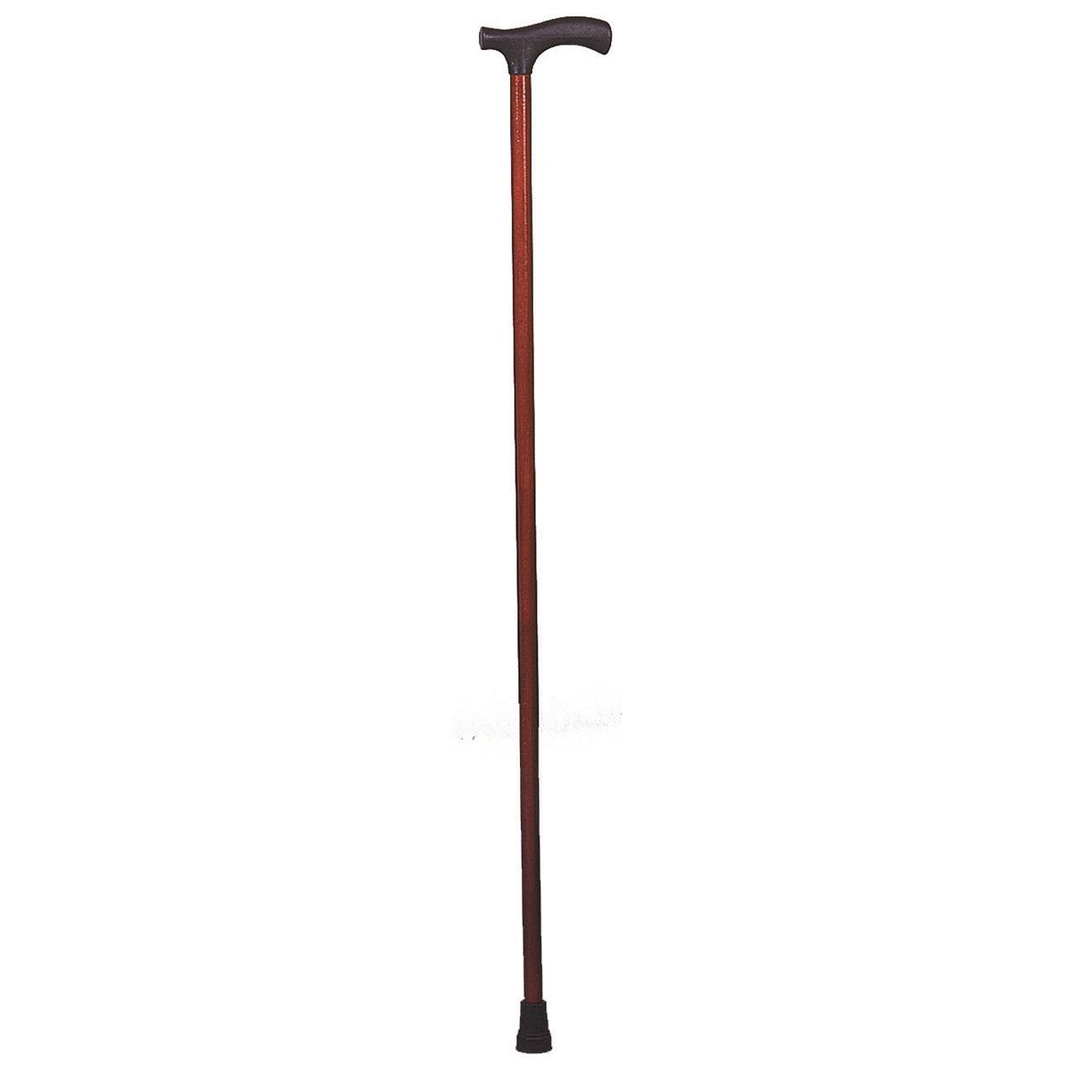 Canne classique en bois munie d'une poignée en T en plastique noir.