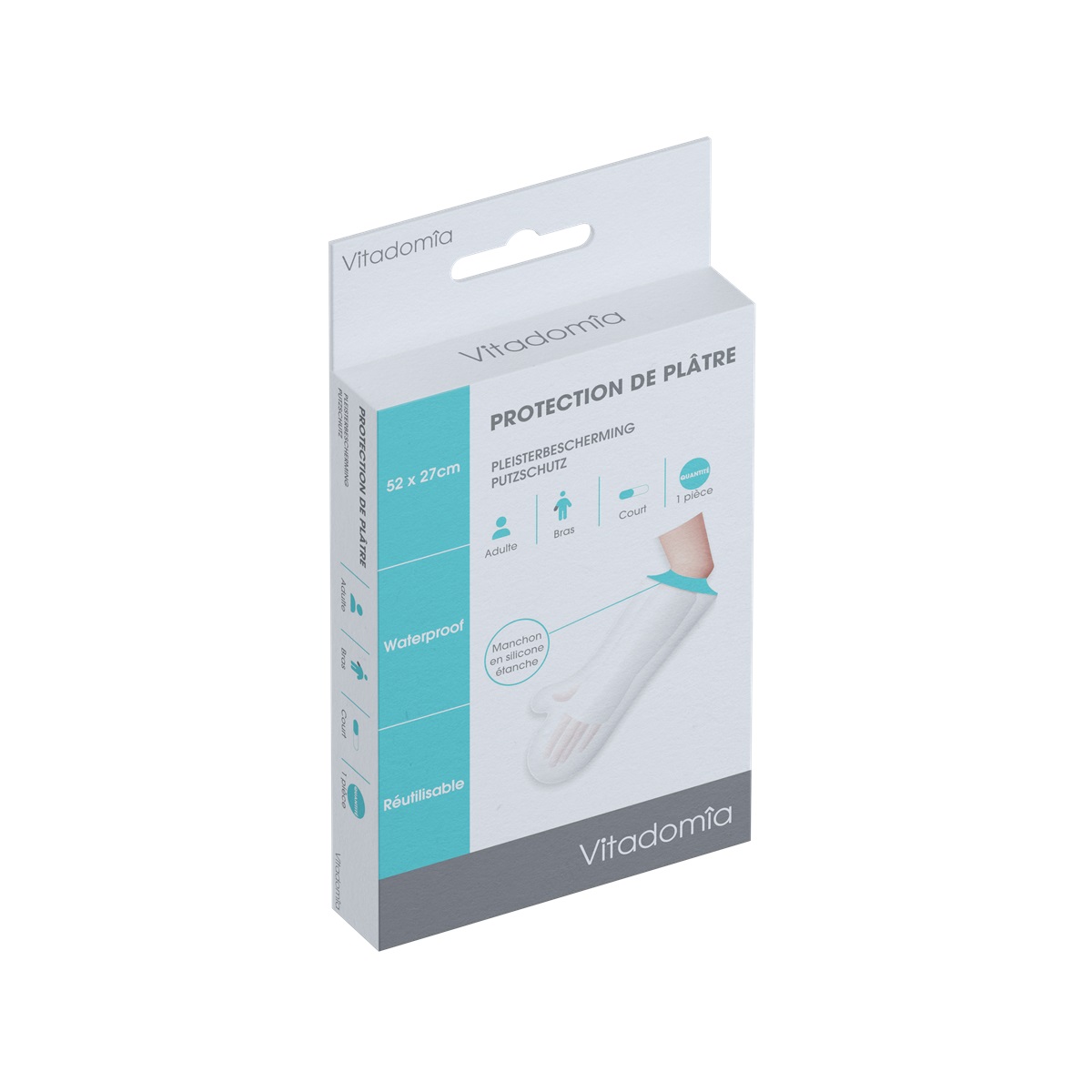 La protection de plâtre pour bras Vitadomia permet de garder son plâtre ou pansement au sec sous la douche ou dans le bain. La protection est étanche fiable, tout en étant confortable, facile à utiliser et réutilisable.